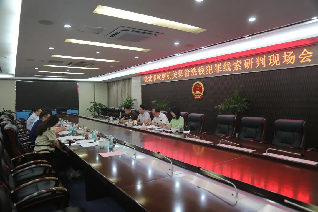 为贯彻落实党中央、国务院关于加强反洗钱工作的决策部署,全面推进打击治理洗钱违法犯罪工作,9月14日上午,全市检察机关惩治洗钱犯罪线索研判现场会(南片)在大丰区检察院召开。会议由盐城市检察院第三检察部主任李玉刚主持,中国人民银行盐城市中心支行反洗钱科科长程海明、盐城市公安局经侦支队一大队副大队长沈为志、盐城市检察院第三检察部检察官助理张玲玲,开发区、亭湖、盐都、东台、大丰等基层检察院相关部门负责同志及大丰区检察院党组成员、副检察长顾兴俊出席会议。